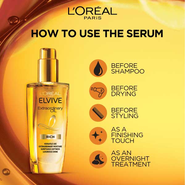 سرم روغن های مغذی انواع موی لورال LOreal Extraordinary محصولی باکیفیت و حاوی شش نوع روغن مغذی و عصاره گل برای تغذیه قوی موها، درخشندگی قوی، لطافت بخشی ابریشمی، صافی و زیبایی کامل موها می باشد. سرم موی اکسترا اوردینری لورال حاوی روغن بابونه، روغن نارگیل، روغن آفتابگردان، گل همیشه بهار، روغن دانه کتان، گل یاس تاهیتی و گل رز می باشد. این فرمول همچنین محافظت کننده حرارتی موها تا 230 درجه سانتی گراد است و بدون ایجاد سنگینی موهایی لطیف، درخشان و خوش حالت را به ارمغان می آورد.