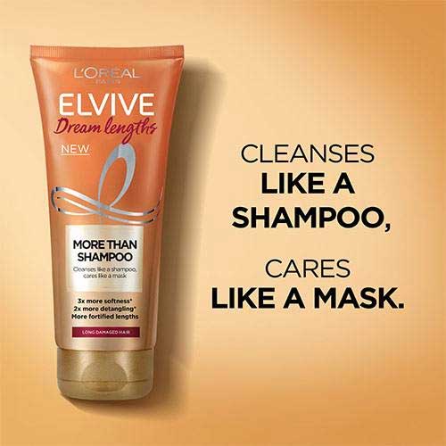 شامپو ماسک موهای بلند و آسیب دیده لورال LOreal More Than Shampoo دارای فرمول نوآورانه کرمی با عملکرد دوگانه پاک کنندگی شامپو و مراقبت کنندگی ماسک مو برای پر کردن مواد مغذی مورد نیاز تارهای مو می باشد. شامپو ماسک لورال دریم دارای بافت کرمی غلیظ تبدیل شونده به فوم است و همراه با تغذیه عمیق هر تار مو و رایحه دلپذیر و بدون ایجاد سنگینی باعث موهایی 3 برابر نرم تر و لطیف تر و 2 برابر منظم تر و بازشوندگی گره آسان تر می شود. این ترکیب با ملایمت کامل بر روی موها، وظیفه پاک کنندگی را نیز به خوبی انجام می دهد و موهای ترمیم شده و بلند زیبا و لطیف خواهیم داشت.
