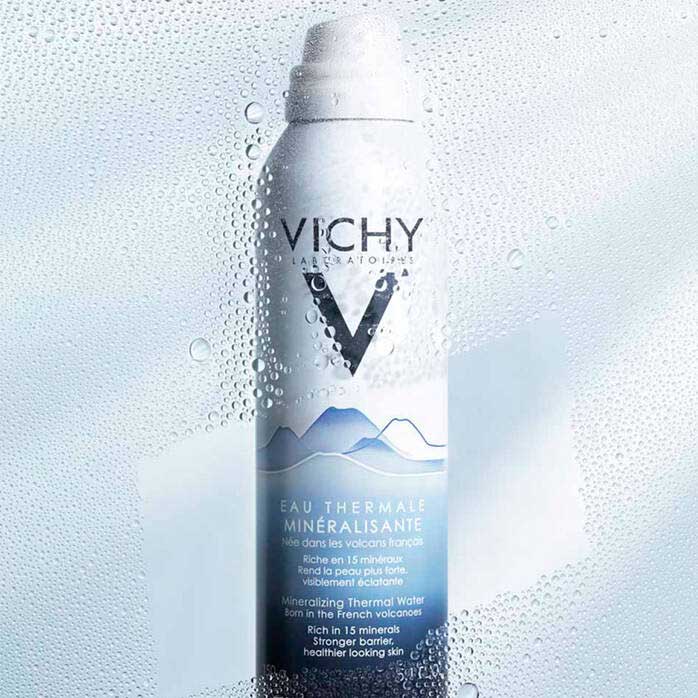 آب ترمال معدنی ویشی در آتشفشان های فرانسه متولد می شود و قبل از اینکه تا دمای 140 درجه سانتیگراد گرم شود و به سطح زمین برسد تا عمق 4000 متری حرکت می کند. در طول سفر هزار ساله خود، 15 ماده معدنی را جذب می کند که به آب قدرت می بخشد. با 11 آزمایش و 5 مطالعه بالینی، آب حرارتی معدنی آتشفشانی ویشی از نظر بالینی ثابت شده است و عملکرد آن پوست را تقویت می کند و به تسریع بازسازی سلول های سطحی پوست کمک می کند.