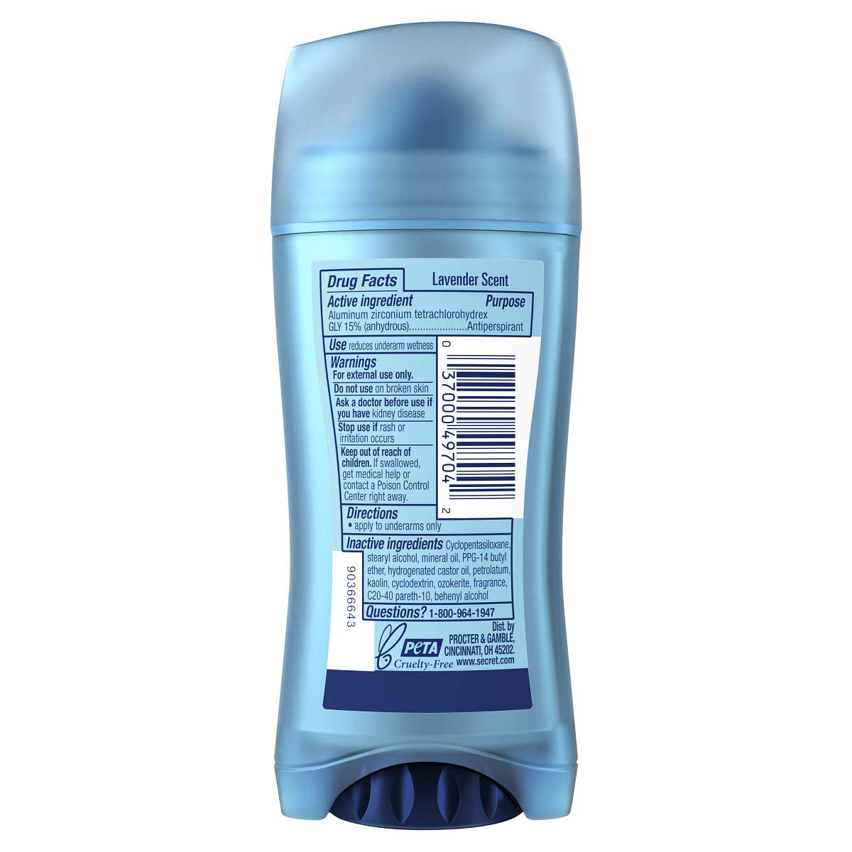 استیک ضدتعریق سکرت لاوندر Secret Relaxing Lavender Solid محافظت کننده پیوسته 48 ساعته به همراه رایحه دلپذیر و آسوده بخش لاوندر است که حس تازگی و راحتی زیر بغل را فراهم می کند. استیک ضدتعریق سکرت دارای فناوری اختصاصی فعال شونده با عرق است که بو را جذب کرده و رایحه را آزاد می کند. فناوری فعال شونده با عرق از مولکولهای خنثیکننده بو استفاده میکند تا بو را به دام بیندازد، آن را محبوس کند و سپس آن را با رایحهای تازه جایگزین کند تا حس تمیزی و طراوت ما را در طول روز حفظ کند، در نتیجه احساس محافظت کامل و تمیزی و تازگی زیر بغل را در تمام طول روز خواهیم داشت.