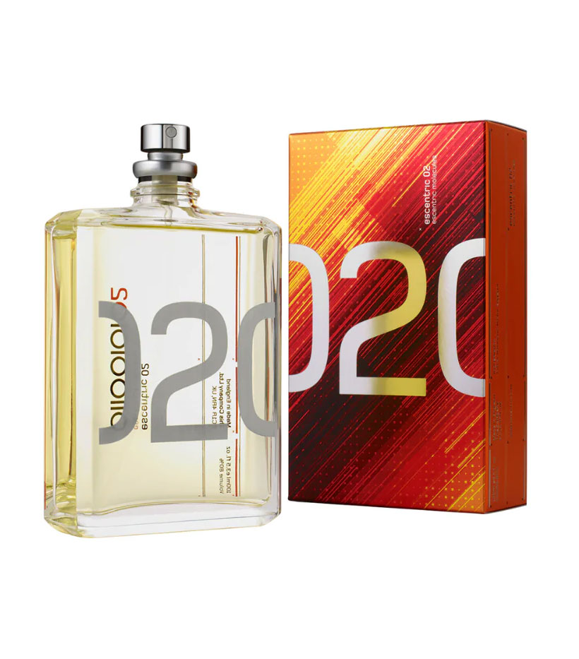 عطر اسنتریک مولکولز اسنتریک Escentric 02 معرفی شده در سال 2008 توسط خانه عطر اسنتریک مولکولز دارای رایحه کهربایی می باشد. عطر اسنتریک 02 دارای رایحه متشکل از نت های فراورده کهربایی آمبروکسان، نت ساختگی Iso E Super با رایحه چوبی کهربایی مشکی، گل زنبق و گل یاس می باشد.