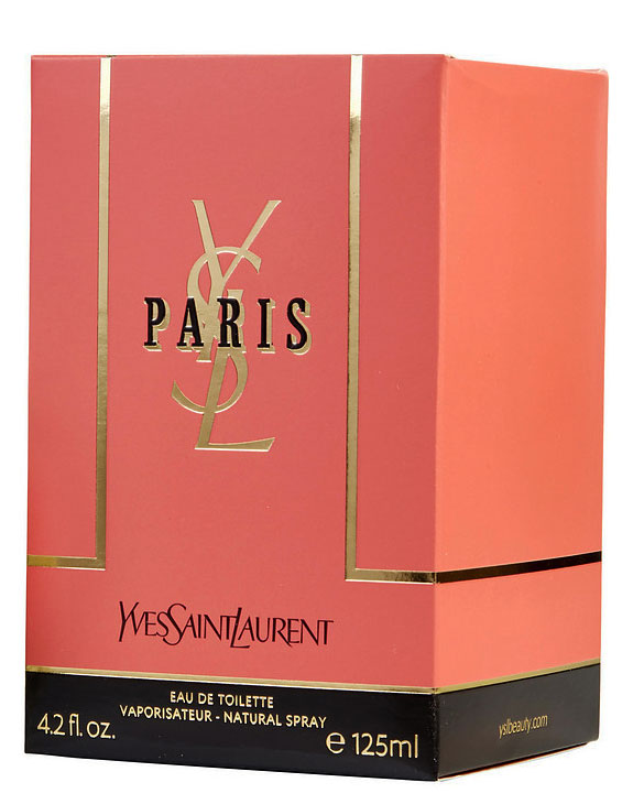 عطر زنانه ایو سن لورن پاریس Yves Saint Laurent Paris معرفی شده در سال 1983 توسط خانه مد ایو سن لورن دارای رایحه گلی و پودری می باشد. رایحه آغازین عطر پاریس شامل نت های گل رز، گل میموسا، گل سنبل، گل شمعدانی رایحه های سبز، شکوفه پرتقال، برگ دارچین و ترنج است. این مسیر بویایی در میانه راه به نت های گل رز، گل بنفشه، گل سوسن، شکوفه لیمو، یلانگ یلانگ، گل زنبق دره، ریشه زنبق و گل یاس می رسد. رایحه پایانی این ترکیب نیز شامل گل زنبق، مشک، گل آفتاب پرست، چوب صندل، گلسنگ، کهربا و سدر می باشد.