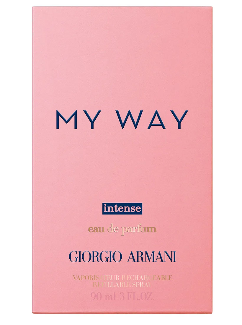 عطر زنانه جورجیو آرمانی مای وی اینتنس Giorgio Armani My Way Intense معرفی شده در سال 2021 توسط خانه مد آرمانی دارای رایحه گل های سفید می باشد. رایحه آغازین عطر مای وی اینتنس شامل نت های شکوفه پرتقال و نارنج است که در میانه راه به رایحه گل مریم هندی می رسد. رایحه پایانی این ترکیب نیز شامل وانیل ماداگاسکار و چوب صندل می باشد.
