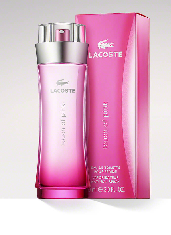 عطر زنانه لاگوست تاچ آف پینک Lacoste Touch of Pink معرفی شده در سال 2004 توسط برند لاگوست دارای رایحه مرکباتی و پودری می باشد. رایحه آغازین عطر تاچ آف پینک شامل نت های پرتقال، هلو، پرتقال توسرخ، گشنیز و هل است که در میانه مسیر بویایی به رایحه گل یاس، گشنیز، هل، برگ بنفشه و بذر هویج می رسد. رایحه پایانی این ترکیب نیز شامل وانیل، مشک و چوب صندل می باشد.
