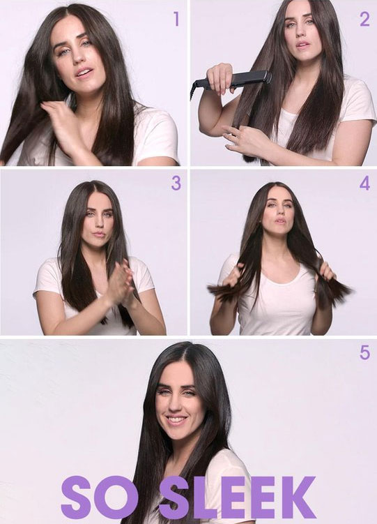 مرحله 2: موها را توسط اتو صاف می کنیم