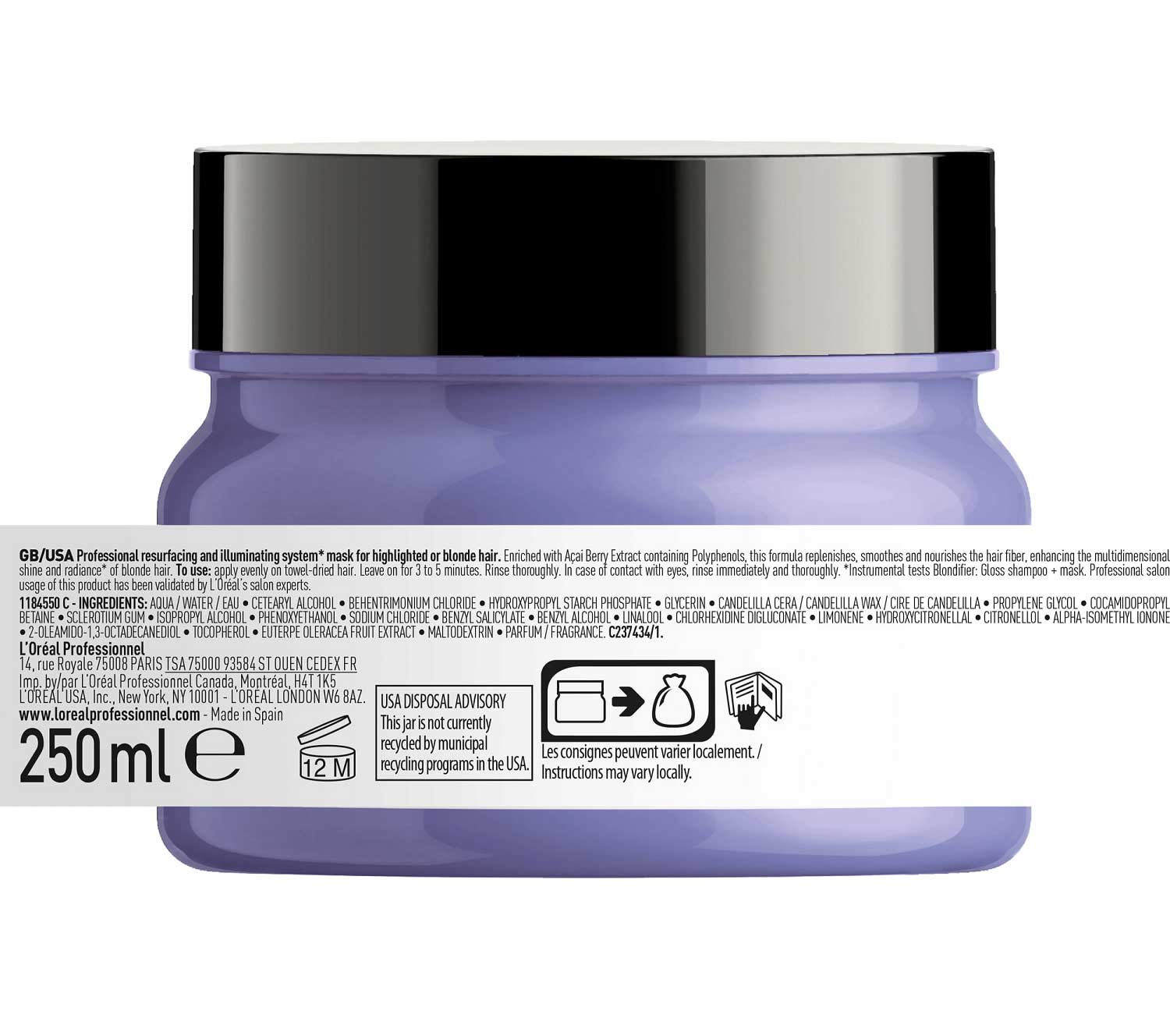 ماسک مراقبت موهای بلوند لورال سری اکسپرت LOreal Blondifier Gloss دارای فرمول پیشرفته سالنی با الهام از فناوری درمانی و مراقبت از پوست لورال و مواد موثر باکیفیت برای تغذیه، درخشندگی زیبا، پرکنندگی مجدد رطوبت، ترمیم و صاف کنندگی آسیب دیدگی های مو می باشد. ماسک موهای بلوند لورال بلوندیفایر گلوس دارای فرمول درخشان کننده سه بعدی موهای بلوند و هایلایت است و غنی شده با عصاره میوه آسای بری (میوه نخل آسای) سرشار از پلی فنول جهت تغذیه و صافی موهای آسیب دیده می باشد. ماسک موهای بلوند سری اکسپرت با مراقبت کامل از موهای بلوند، زیبایی و درخشش موهای سالنی را به ارمغان می آورد.