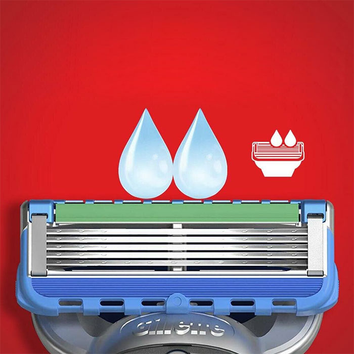 تیغ اصلاح یدک ژیلت پروگلید پاور Gillette Proglide Power دارای تکنولوژی اصلاح 5 تیغه به کمک نوار ژل مرطوب کننده برای تسکین و جلوگیری از ایجاد التهاب و حساسیت پوست می باشد. تیغ اصلاح یدک ژیلت فیوژن پروگلید پاور همچنین دارای میکرو دندانه های شانه ای جهت بلند کردن موها و اصلاح کامل و یک تیغه اصلاح دقیق در پشت کارتریج برای نقاط حساس صورت و خط گرفتن می باشد.