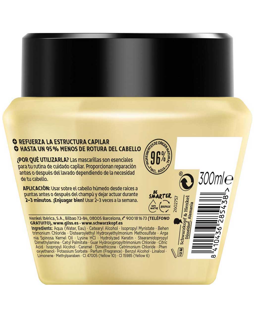 ماسک موی روغن های مغذی گلیس Gliss Ultimate Oil Elixir حاوی بیش از 96 درصد عصاره های طبیعی برای تغذیه عمیق موها، کاهش 95 درصدی شکنندگی موها و احیای لطافت و انعطاف پذیری تارهای مو می باشد. ماسک موی گلیس نوتریتیو حاوی آمینو اسیدهای ضروری فیبر مو برای بازسازی ساختار شکننده موها است. این ترکیب همچنین حاوی روغن آرگان غنی از اسیدهای امگا برای تغذیه عمیق، رفع خشکی و احیای لطافت موها و همچنین کراتین هیدرولیز شده برای ترمیم و افزایش ضخامت و صافی موها می باشد.