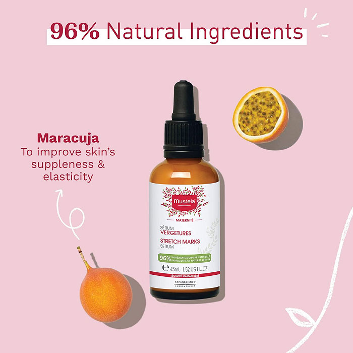 سرم ضد ترک و کشیدگی پوست بدن موستلا Mustela Stretch Marks دارای فرمول ویژه متشکل از 96 درصد عصاره های طبیعی برای رفع علائم کشیدگی و افزایش خاصیت الاستیک پوست در دوران بارداری و پس از زایمان می باشد. سرم موستلا حاوی روغن پشن فروت با خاصیت آبرسانی قوی برای افزایش انعطاف پذیری، استحکام بخشی و بهبود ظاهر خطوط کشیدگی پوست است. این ترکیب همچنین حاوی هیالورونیک اسید برای آبرسانی قوی و افزایش قابلیت ارتجاعی و فربگی پوست و همچنین روغن آووکادو برای تغذیه قوی بافت پوست می باشد. سرم استرچ مارک موستلا با کاهش طول، عرض، رنگ و عمق ترک و کشیدگی پوست، ظاهر آنها را بهبود می بخشد، پوست را نرم و لطیف می کند و در عین حال خاصیت ارتجاعی آن را ارتقا می بخشد.