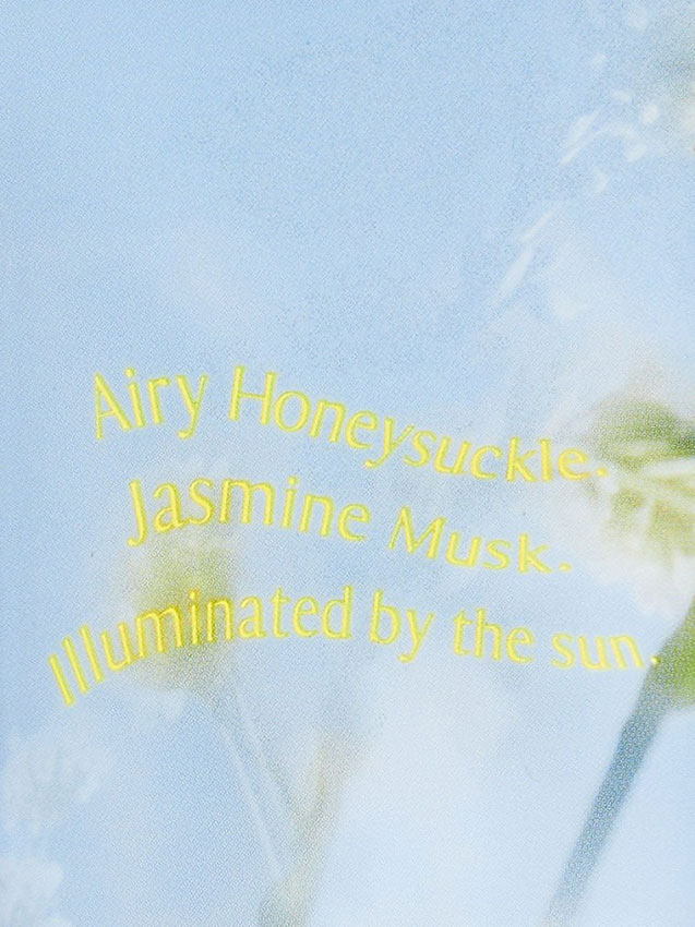 لوسیون بدن ویکتوریا سکرت سان شاین Sunshine Haze دارای فرمول باکیفیت متشکل از رایحه دلپذیر گل یاس امین الدوله، گل یاس، مشک و گل زنبق دره در تم احساس بهاری غوطه ور شدن در گل ها همراه با رطوبت رسانی 24 ساعته پوست می باشد. لوسیون بدن ویکتوریا سکرت حاوی آلوئه ورا، ویتامین C، ویتامین E و آنتی اکسیدان بوده و استفاده از آن علاوه بر تغذیه و آبرسانی پوست حس بسیار خوشایندی به همراه دارد.