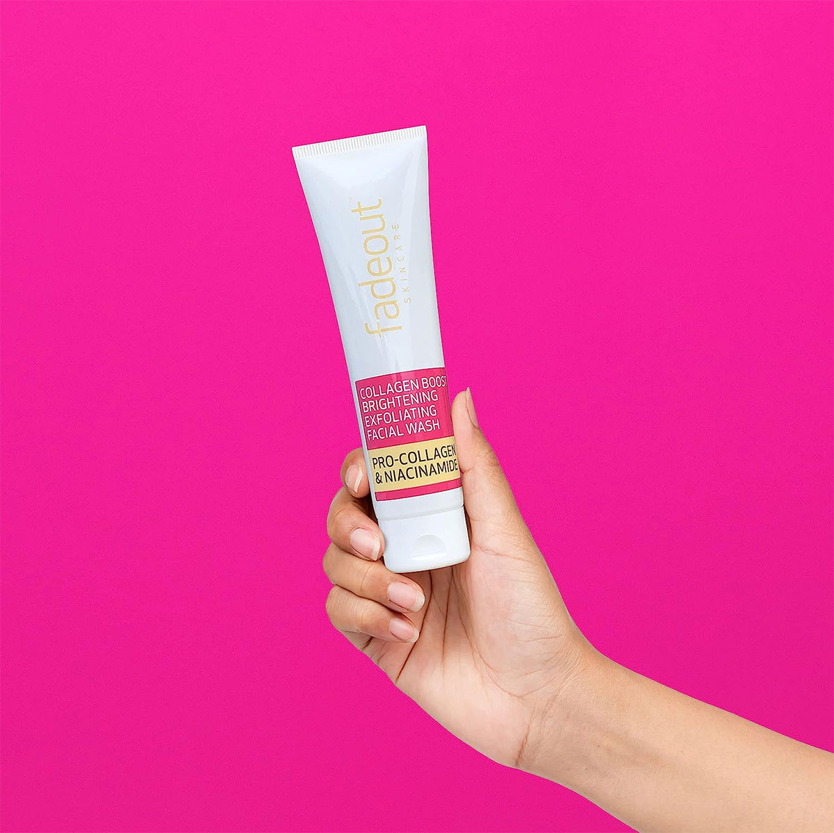 فوم شوینده روشن کننده و کلاژن ساز فیداوت Fadeout Collagen Boost دارای فرمول باکیفیت برای پاکسازی ناخالصی ها و شفاف سازی صورت به همراه پپتیدهای گیاهی پرو کلاژن برای افزایش تولید کلاژن و ایجاد بافت متراکم تر، سفت تر و منعطف تر پوست می باشد. فیس واش فیداوت حاوی نیاسین آمید برای کاهش التهاب پوست و استرس های محیطی است و با انواع لک های مقاوم از جمله لک های ناشی از التهاب، آفتاب و تغییرات هورمونی مقابله می کند. این ترکیب همچنین حاوی ذرات میوه کرن بری به عنوان دانه های اسکراب برای نوسازی بافت پوست و کمپلکس Clerilys W یک ترکیب گیاهی کپسوله شده از توت سفید، گل ختمی و خیار با عملکرد روشن کنندگی و نوسازی سلول های پوست برای ایجاد نمای تازه و درخشان صورت است که با گلیسیرین برای حفظ رطوبت پوست همراه شده است.