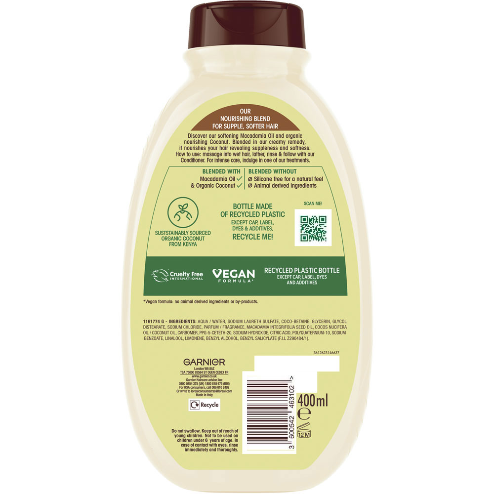 Garnier Ultimate Blends Coconut Milk and Macadamia Nourishing Shampoo for Dehydrated to Dry Hair
