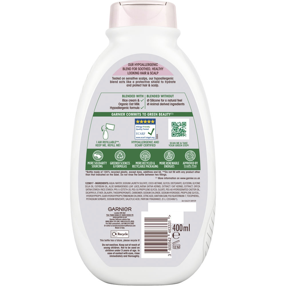 Garnier Ultimate Blends Delicate Oat Milk Rice Cream and Organic Oat Milk Soothing Shampoo