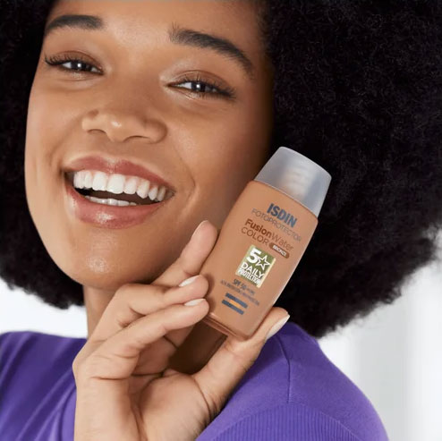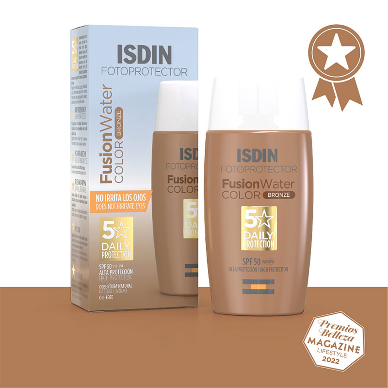 ضدآفتاب رنگ برنزی ایزدین فیوژن واتر Isdin Fusion Water Bronze SPF50 دارای بافت بسیار سبک با جذب شوندگی فوری و محافظت کنندگی قوی در برابر پرتوهای UVA و UVB می باشد. ضدآفتاب ایزدین حاوی هیالورونیک اسید جهت آبرسانی قوی 12 ساعته پوست است و به کمک بافت سبک و بدون چربی به پوست اجازه تنفس داده و احساس شادابی را به همراه محافظت کنندگی به ارمغان می آورد. ضدآفتاب ایزدین بر روی پوست مرطوب و همچنین در همه نقاط صورت از جمله دور چشم قابل استفاده است.