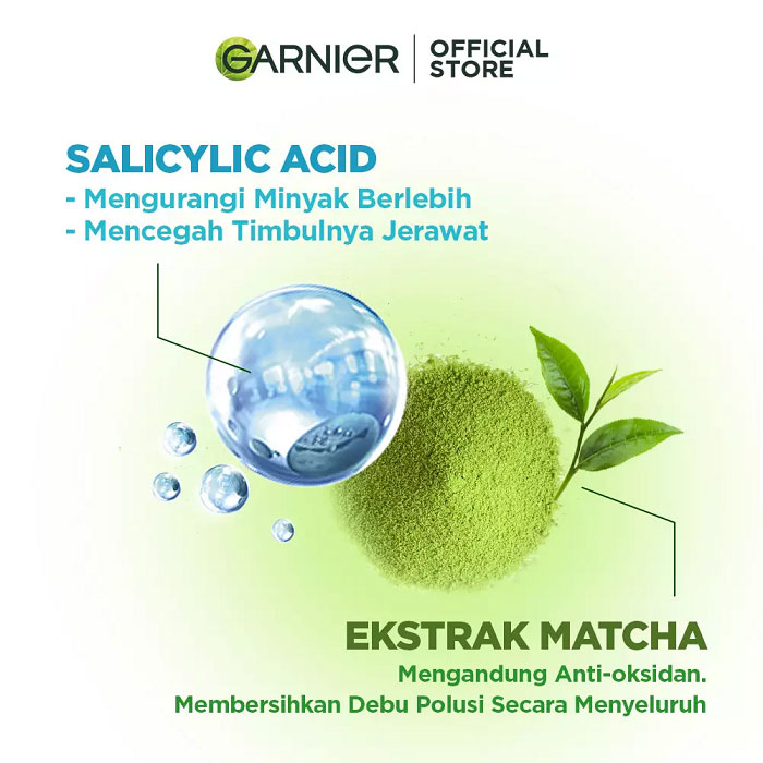 فوم شوینده و سم زدای پوست چرب چای سبز ماچای گارنیه Pure Active Matcha حاوی عصاره های طبیعی برای پاکسازی عمیق آلودگی ها و چربی اضافه، سم زدایی، کاهش ترشح چربی سبوم و مقابله با رادیکال های آزاد می باشد. فوم شوینده پیور اکتیو گارنیه حاوی عصاره چای سبز ماچا (نوعی چای سبز پودری) به عنوان ماده موثره تصفیه کننده و دارای قدرت آنتی اکسیدانی 100 برابر بیشتر برای مقابله با آلودگی های محیطی و رادیکال های آزاد است. این ترکیب همچنین حاوی سالیسیلیک اسید با خاصیت آنتی باکتریال و ضدجوش، خاک رس کائولین برای جذب چربی اضافی و نعناع برای شاداب کنندگی می باشد. در نتیجه تولید چربی اضافی سبوم 96 درصد کاهش می یابد و پوستی با نمای تمیز، مات و شاداب خواهیم داشت.