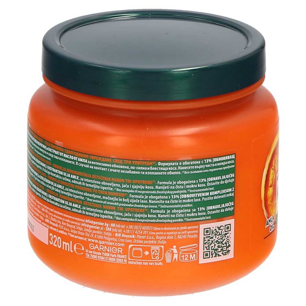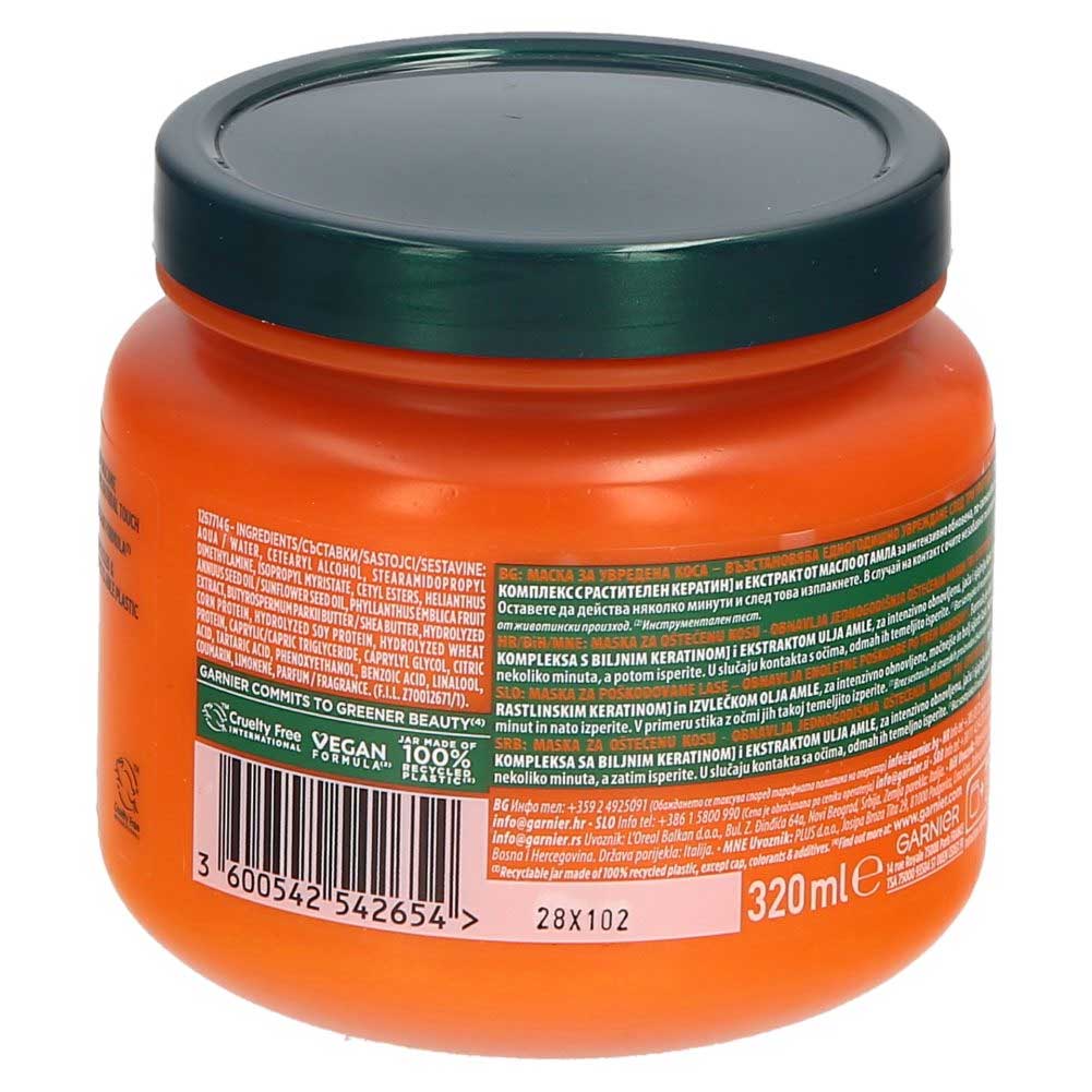 ماسک ترمیم کننده قوی موی گارنیه Keratin Bomb Sos Repair حاوی عصاره های طبیعی و مواد موثر غنی برای ترمیم آسیب دیدگی های یکساله مو و ایجاد لطافت ابریشمی، درخشندگی و نمای سالم موها می باشد. ماسک موی اس او اس گارنیه حاوی 13 درصد کمپلکس بازسازی کننده و نوسازی تارهای مو است و با سه بار استفاده آسیب دیدگی های یکساله موها را برطرف می کند. این ترکیب همچنین حاوی کراتین گیاهی برای ترمیم سطح مو و روغن میوه آملا (انگور فرنگی هندی) برای پر کردن تخلل های ناشی از شکستن و آسیب دیدگی های محیطی می باشد، در نتیجه موهایی عمیقا تغذیه شده، لطیف، درخشان و منعطف خواهیم داشت.