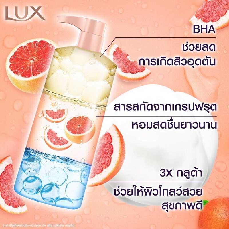 شامپو بدن گریپ فروت لوکس Lux Healthy Glow حاوی رایحه انرژِی دهنده و شاداب کننده گریپ فروت به همراه 3 برابر عصاره گیاهی گلوتا برای درخشندگی و روشن کنندگی پوست و همچنین BHA (بتا هیدروکسی اسید) برای پاکسازی سلول های مرده پوست است. شامپو بدن لوکس ضمن پاک کنندگی، مراقبت کننده لطافت پوست، مرطوب کننده و خوشبو کننده طولانی مدت بدن می باشد و حس طراوت و تازگی را در طول روز به ارمغان می آورد. مواد موثر و عصاره های طبیعی مغذی و رطوبت رسان دیگر شامپو بدن انرژِی دهنده لوکس شامل موارد زیر است: