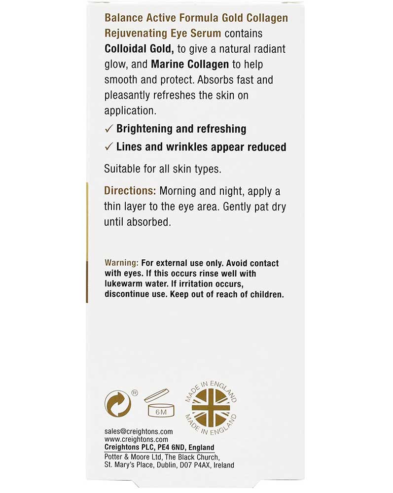 سرم جوانسازی و سفت کننده دور چشم طلا و کلاژن بالانس Balance Gold Collagen حاوی مواد موثر فعال برای احیای صافی و روشن کنندگی دور چشم و ایجاد نمای جوان و سفت تر پوست دور چشم می باشد. سرم جوانسازی بالانس حاوی طلای کلوئیدی (نانو ذرات طلا در مایع) با خواص بازسازی سلامتی و درخشندگی پوست و کلاژن دریایی برای افزایش صافی، سفتی و محافظت از ساختار پوست است. این ترکیب با کاهش خطوط چروک، نمای سفت تر، هموارتر و درخشان تر دور چشم را به ارمغان می آورد.