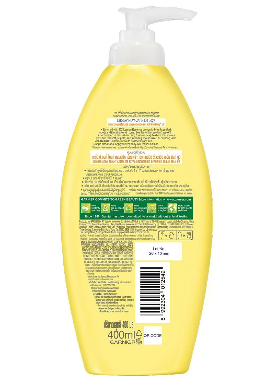 Garnier Body Bright Complete Extra Brightening Moisturizing Serum Milk UV 2x Lemon Essence