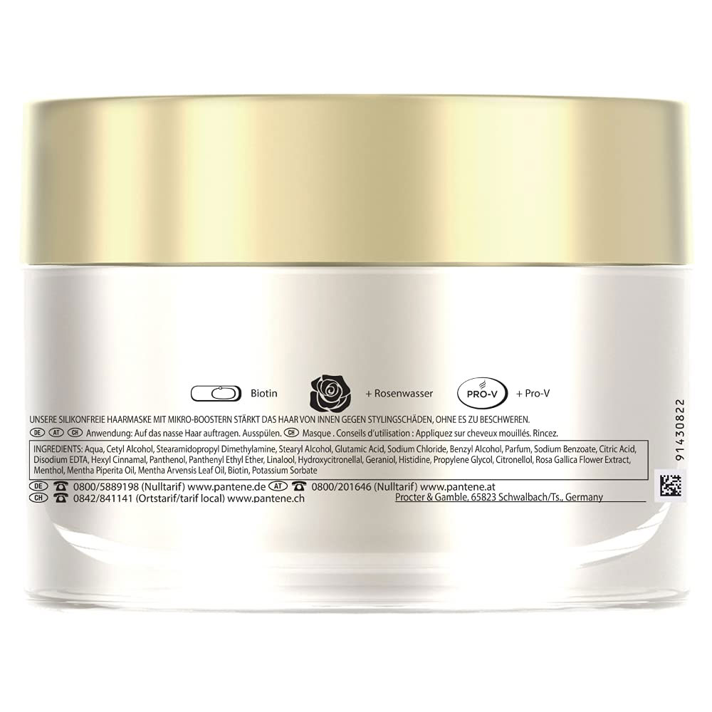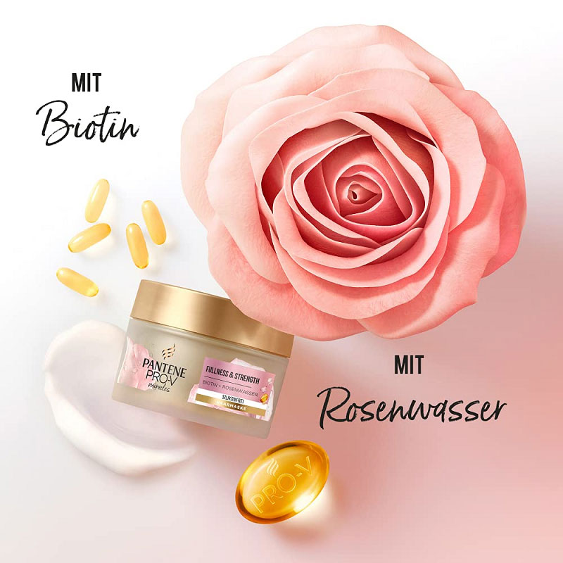 ماسک موی حجم دهنده و ضخیم کننده پنتن میراکل Pantene Fullness Strength دارای فرمول تست شده توسط موسسه ویتامین سوئیس برای افزایش ضخامت و حجم موها بدون ایجاد سنگینی می باشد. ماسک موی پنتن میراکل حاوی بیوتین (ویتامین B7) برای تقویت ریشه و ساقه مو و محافظت از سلامتی موها است که با عصاره گل رز برای رطوبت رسانی و لطافت بخشی موها، پنتنول (پرو ویتامین B5) برای ترمیم و محافظت موها و روغن نعناع برای انرژی بخشی و شادابی موها می باشد، در نتیجه موهایی حجم دار، مستحکم و سالم خواهیم داشت.
