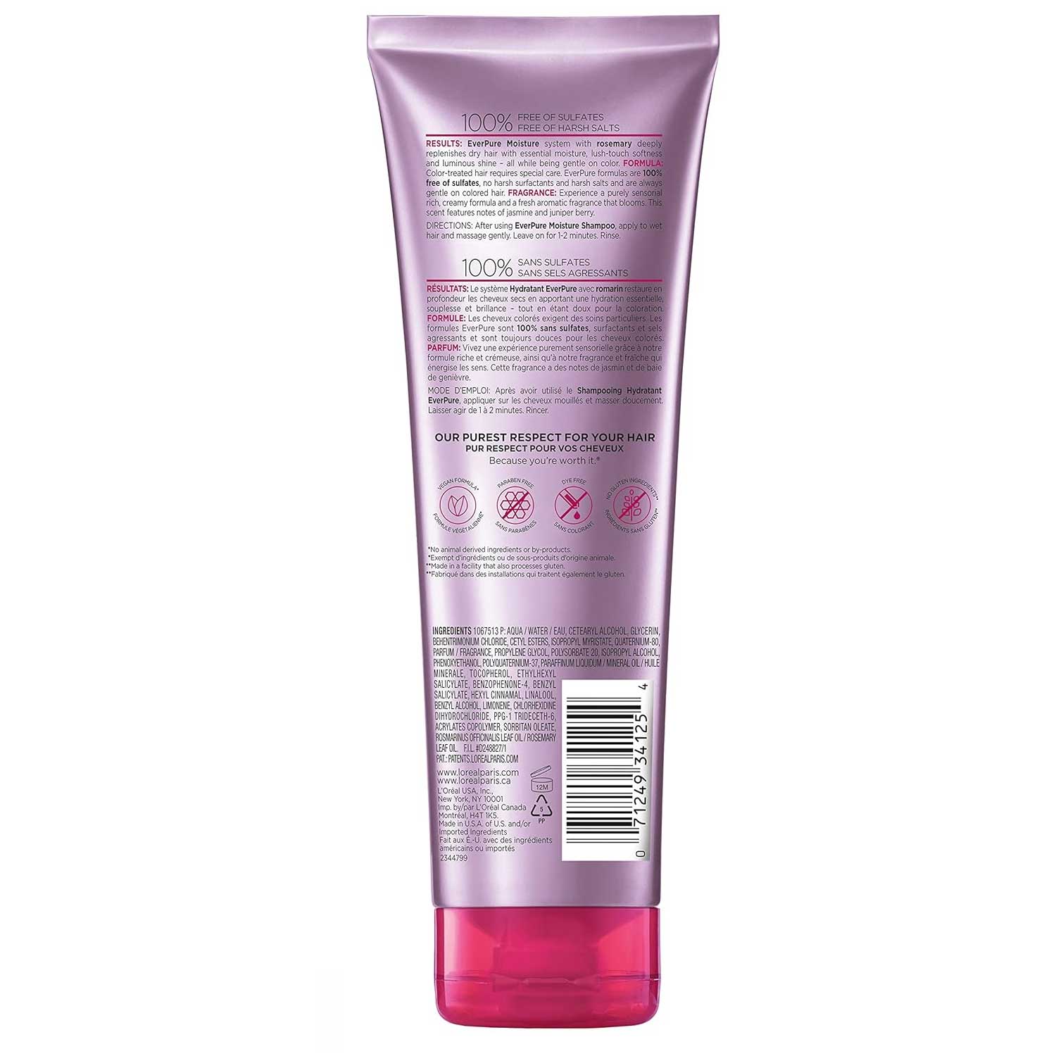 نرم کننده آبرسان موهای رنگ شده لورال اور پیور LOreal Ever Pure حاوی فرمول باکیفیت سالنی گیاهی جهت آبرسانی و درخشندگی و جلوگیری از کدر شدن موهای رنگ شده خشک می باشد. نرم کننده موی اور پیور لورال حاوی عصاره رزماری برای پرکنندگی عمیق و مجدد رطوبت از دست رفته تارهای مو بدون ایجاد سنگینی روی موها می باشد. این ترکیب بدون سولفات و بدون نمک و سایر مواد شیمیایی مضر است و برای موهای رنگ شده، کراتینه و آسیب دیده گزینه ای بسیار مناسب محسوب می شود.