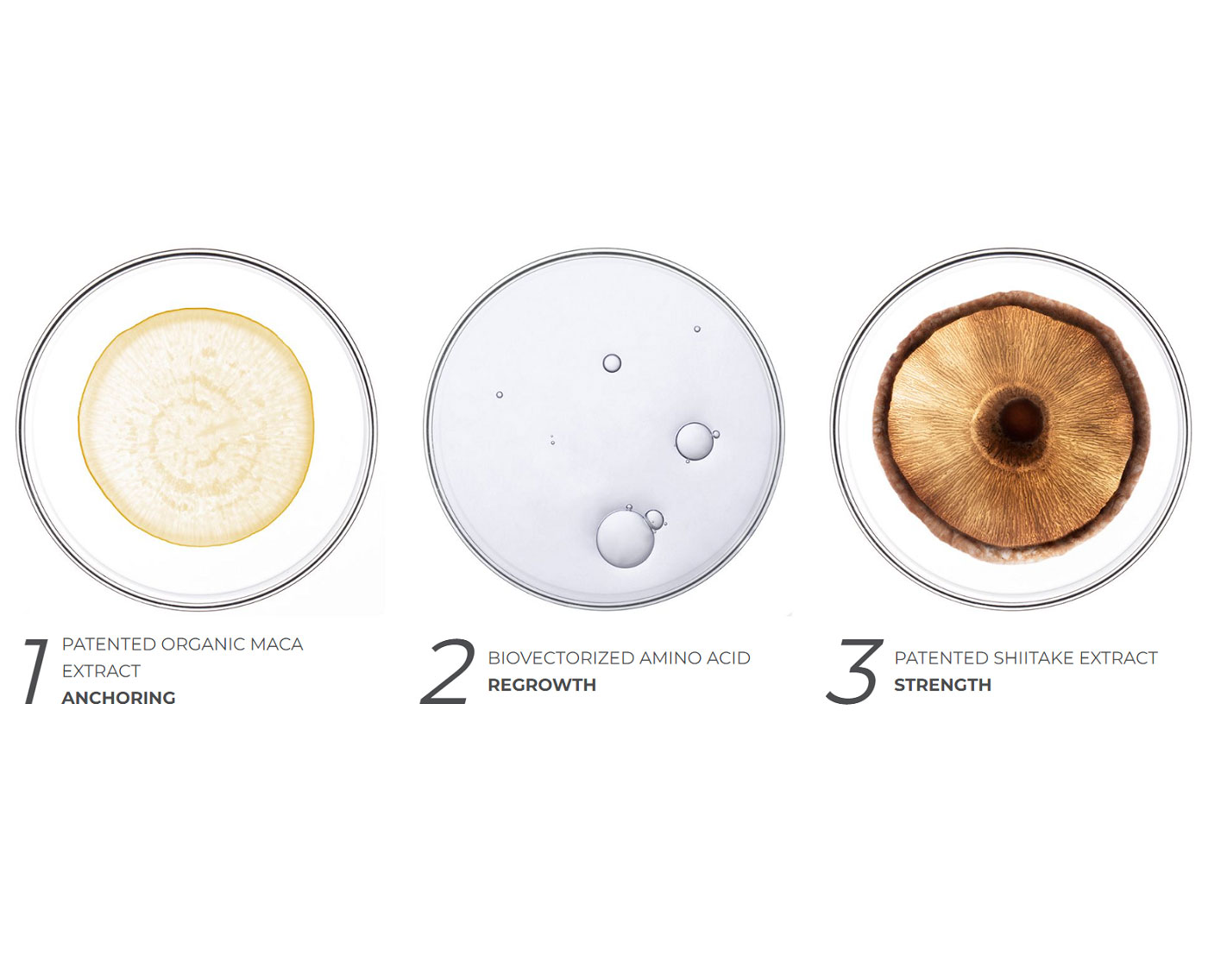 این فرمول همچنین حاوی عصاره قارچ شیتاکه (با منشا ژاپنی) که از آن با عنوان قارچ طول عمر یاد می شود برای کمک به عملکرد صحیح عروق پوست سر به منظور تولید مواد مغذی و اکسیژن رسانی به ریشه مو و افزایش قدرت و استحکام و جلوگیری از ضعیف شدن موها است.