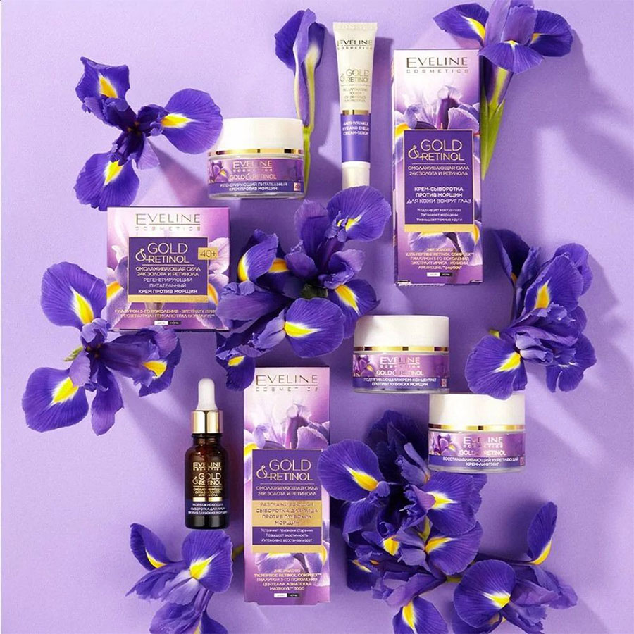 کرم ضدچروک و جوانسازی دور چشم طلا و رتینول اولاین Eveline Gold Retinol دارای فرمول ویژه برای استحکام بخشی اپیدرم اطراف چشم و پلک، کاهش خطوط چروک، آبرسانی و افزایش سفتی و کاهش پف زیر چشم می باشد. کرم دور چشم اولاین حاوی عصاره طلای 24 عیار برای حمایت از تولید کلاژن، بازسازی و مقابله با فرایند پیری است. مواد موثر دیگر این ترکیب شامل رتینول (ویتامین A) برای تسریع نوسازی سلولی و افزایش سفتی زیر چشم، عصاره گل زنبق، هیالورونیک اسید نسل سوم برای آبرسانی پوست، کمپلکس لیفتینگ سفت کننده 3 درصد PEPTIDE-LIFT COMPLEXTM، کافئین برای روشن کنندگی دور چشم، ویتامین E برای محافظت پوست، ویتامین B5 برای بازسازی، روغن آرگان و سرامید برای استحکام بخشی پوست می باشد.