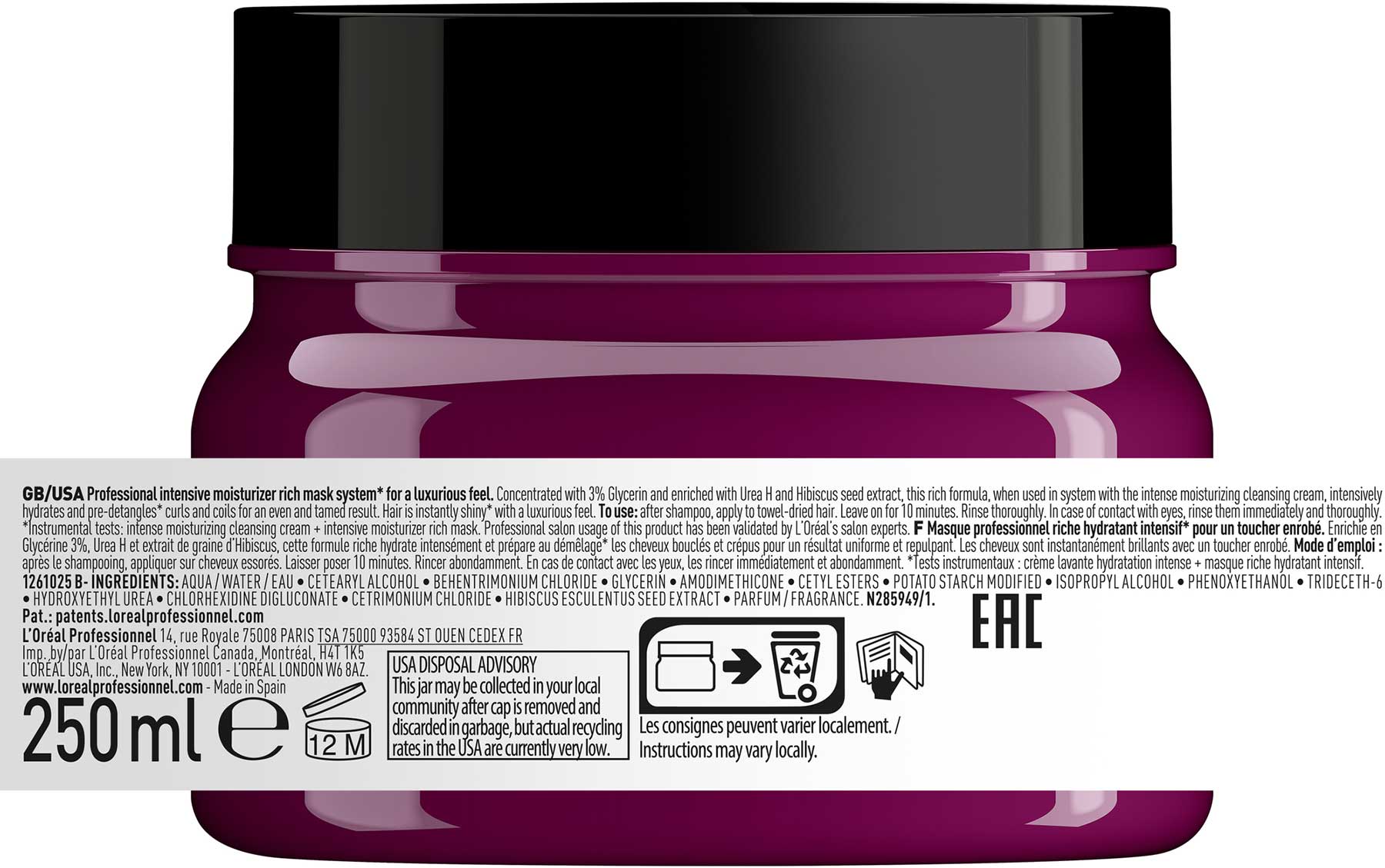 ماسک موی حرفه ای مراقبت موهای فر لورال سری اکسپرت LOreal Curl Expression Rich دارای فرمول پیشرفته با الهام از فناوری درمانی و مراقبت از پوست لورال و مواد موثر باکیفیت برای مراقبت ویژه از موهای مجعد و فر، آبرسانی عمیق موها، منظم کردن موها، رفع وز، درخشندگی و ایجاد فرهای آزاد و طبیعی می باشد. ماسک موی بیان فر لورال پروفشنال حاوی کنستانتره قوی گلیسیرین گیاهی 3 درصد و اوره Urea H که به طور طبیعی در پوست وجود دارد برای آبرسانی قوی مو و افزایش مدت ماندگاری رطوبت در بافت مو می باشد، این ترکیب همچنین حاوی عصاره دانه گل ختمی برای تغذیه، رفع وز، لطافت بخشی و تعریف فرهای زیبا است. ماسک موهای فر لورال پروفشنال ضمن تغذیه عمیق، همراه با رایحه دلپذیر گل یاس، گل ارکیده و گل فریزیا با رایحه پایه چوب سدر حس موهای منظم، بدون وز، درخشان، لطیف و خوشبو را به ارمغان می آورد.