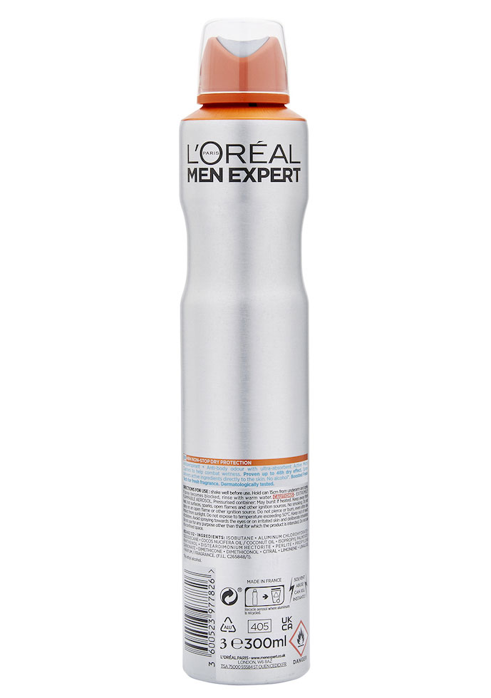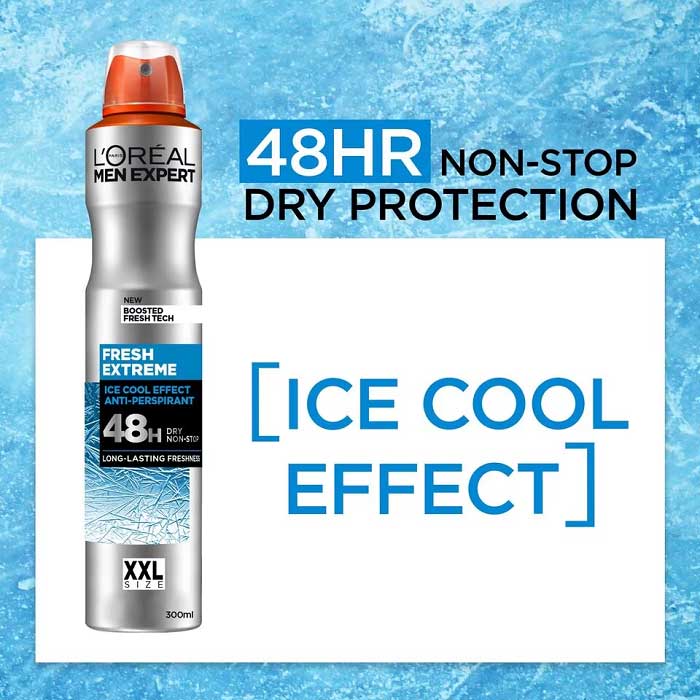 اسپری ضدتعریق لورال فرش اکستریم LOreal Fresh Extreme دارای فناوری فوق جاذب برای حفظ خشکی و تازگی 48 ساعته زیر بغل به همراه خنک کنندگی قوی مانند احساس یخ می باشد. اسپری فرش اکستریم همچنین دارای فرمول بدون الکل، خنثی کننده بوی عرق و محافظت کننده پیوسته شادابی پوست است.