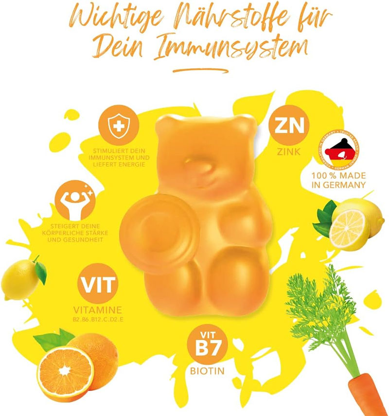 مکمل پاستیل تقویت ایمنی بدن آیوی بیرز Ivybears Boost Immune دارای فرمول حاوی کنستانتره قوی مواد معدنی و ویتامین های ضروری برای تامین نیازهای بدن است. مکمل پاستیلی آیوی بیرز حاوی منیزیوم، روی، ویتامین C، B12، D2، B6، B2، ویتامین E، بیوتین و فولیک اسید است و باعث تقویت سیستم ایمنی بدن، افزایش سطح انرژی و افزایش دوام و پایداری فیزیکی بدن در طول فعالیت های روزانه است. پاستیل های آیوی بیرز تهیه شده از ترکیبات گیاهی وگن و بدون مواد نگهدارنده و گلوتن هستند و به عنوان گزینه ای قابل اعتماد در برنامه مراقبت روزانه سلامتی بدن محسوب می شوند.