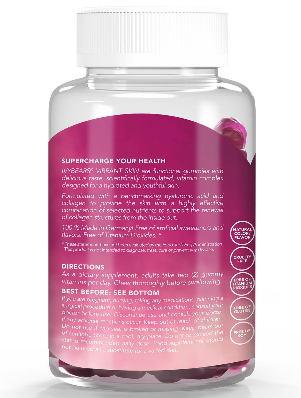 Ivybears Supercharge Yours Health Vibrant Skin Collagen and Hyaluronic Acid Dietary Supplement