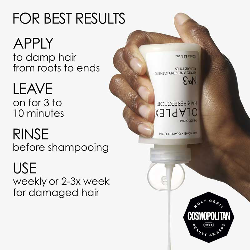 کرم ترمیم کننده موی قبل از شامپوی اولاپلکس Olaplex N3 دارای فرمول پیشرو و ثبت اختراع شده با عملکرد بسیار موثر و متشکل از ترکیب عصاره های ارگانیک و مواد موثره ترمیم کننده پیوند شیمیایی ساختار مو و ترمیم لایه های درونی مو در سطح ملکولی می باشد. ترمیم کننده درمانی پرفکتور پرفروش ترین محصول اولاپلکس برای ترمیم فعال آسیب دیدگی های روزمره موها و حفظ قدرت موها در فاصله زمانی بین مراجعه به آرایشگاه است و توسط متصل کردن مجدد پیوندهای شکسته شده درونی مو (پل های مو) باعث رفع نشانه های آسیب دیدگی مو از جمله شکنندگی، انتهای دوشاخه، موخوره و وز می شود.