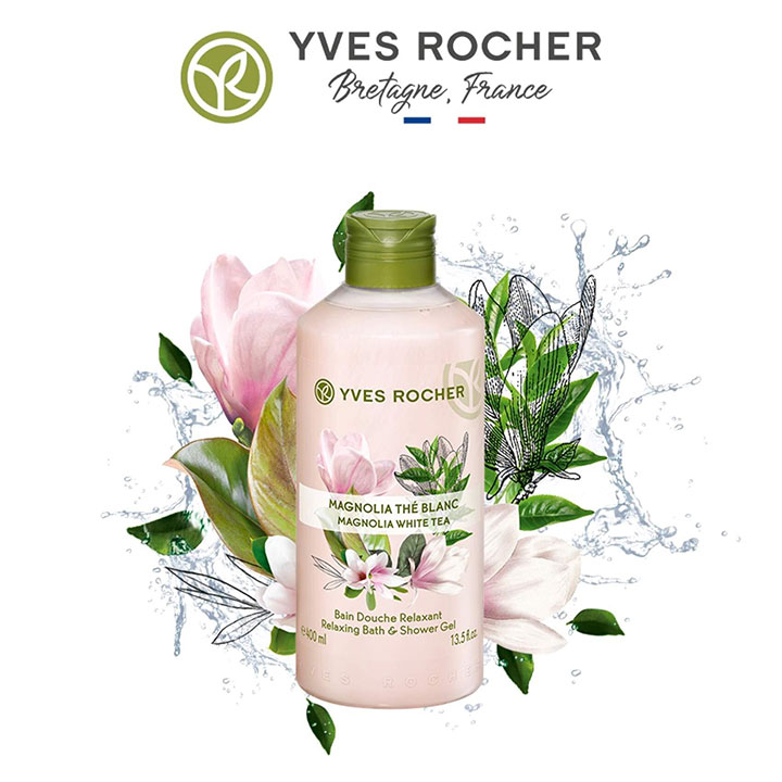 ژل دوش گل مگنولیا و چای سفید ایوروشه Yves Rocher Magnolia White Tea حاوی بیش از 92 درصد عصاره های طبیعی برای لطافت بخشی و رطوبت رسانی ملایم پوست به همراه پاک کنندگی بدون ایجاد خشکی می باشد. ژل دوش ایوروشه حاوی ژل ارگانیک آلوئه ورا برای آبرسانی و حفظ شادابی پوست بدن است. این ترکیب همچنین حاوی عصاره گل مگنولیا برای لطافت پوست و چای سفید برای آرامش بخشی می باشد.