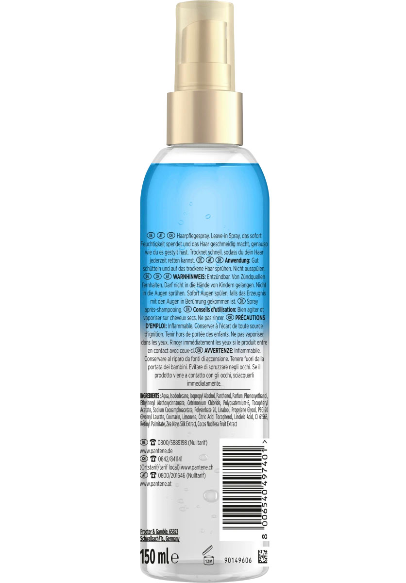 اسپری دوفاز آبرسان موی پنتن Pantene Hydration Sos دارای عملکرد آبرسانی فوری، ایجاد موهای لطیف و منعطف و بدون ایجاد سنگینی روی مو می باشد. اسپری دوفاز پنتن حاوی نارگیل برای آبرسانی و تغذیه موها، پرو ویتامین B5 برای ترمیم و بازسازی موها، آنتی اکسیدان ویتامین E برای محافظت از موها و همچنین عصاره کاکل ذرت برای لطافت بخشی تارهای مو است.
