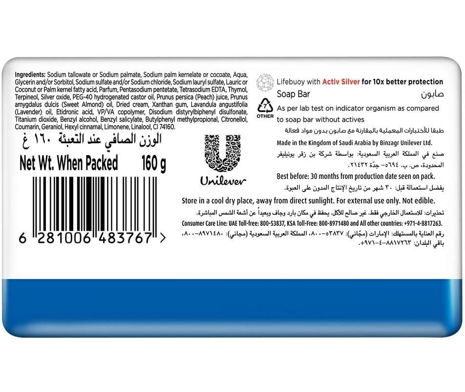 Lifebuoy Mild Care Germ Protection Antibacterial Soap Bar with Active Silver
