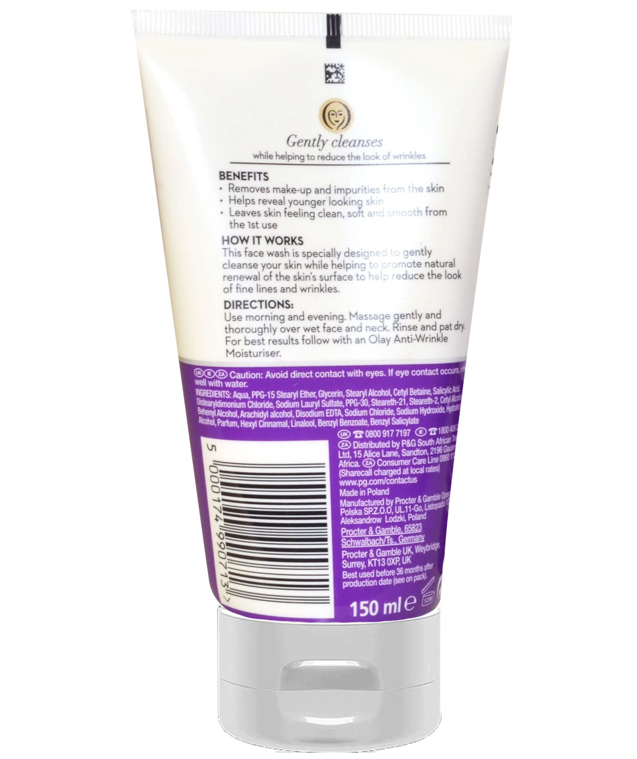 فوم شوینده و ضد چروک صورت اولی Olay Anti Wrinkle دارای فرمول پاک کننده ملایم آرایش و آلودگی های روزانه پوست به همراه مواد موثر نوسازی و افزایش صافی پوست می باشد. فیس واش اولی حاوی میکرو ذرات ساینده به منظور پاکسازی سلول های مرده، افزایش صافی سطح ناهموار پوست و کاهش چروک ها است. این ترکیب همچنین حاوی گلیسیرین برای افزایش ماندگاری رطوبت در بافت پوست است و نمای پوستی تمیز و جوان تر را حاصل می شود.
