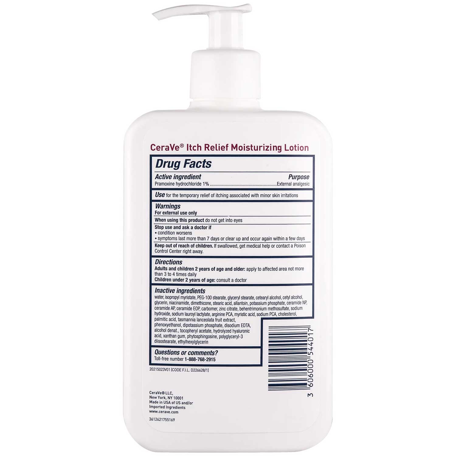 لوسیون بدن تسکین دهنده خارش و آبرسان سراوی CeraVe Itch Relief دارای فرمول توسعه یافته توسط متخصصین پوست برای تسکین خارش پوست در طی دو دقیقه و آبرسانی پوست خشک می باشد. لوسیون سراوی خارش ناشی از نیش حشرات، آفتاب سوختگی، پیچک سمی و سایر تحریکات پوست را تسکین می دهد، این فرمول آزمایش شده بالینی دارای اثر تایید شده 8 ساعته برای احساس آسودگی راحتی پوست تسکین یافته است. این ترکیب حاوی 1 درصد پراموکسین هیدروکلراید برای رفع خارش و سه نوع سرامید ضروری پوست برای حمایت از سد محافظت طبیعی پوست و جلوگیری از خشک شدن آن می باشد. سرامیدهای ضروری پوست توسط فناوری MVE درون ذرات کروی مغذی کپسوله شده اند تا به طور تدریجی و آهسته در بافت پوست رهاسازی شوند و در تمام طول روز از سلامتی پوست حمایت کنند.