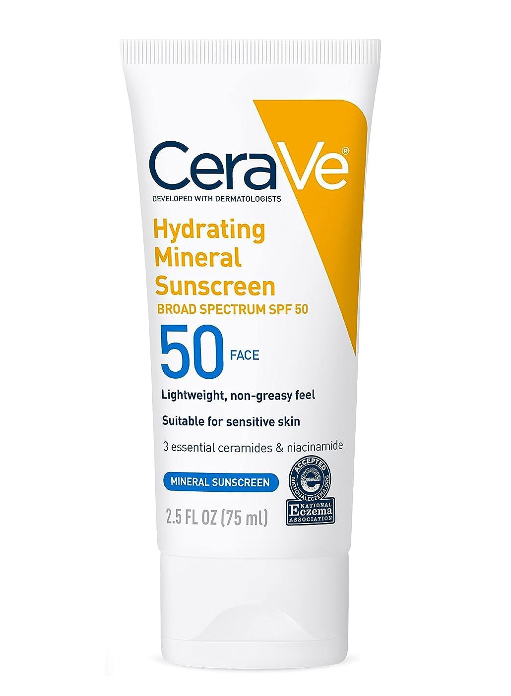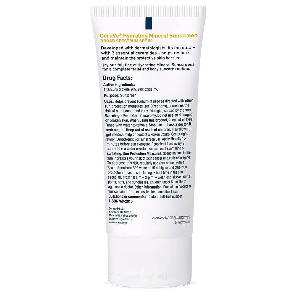 لوسیون ضدآفتاب مینرال سراوی CeraVe Hydrating Mineral SPF50 دارای فرمول محافظت کنندگی قدرتمند و حاوی 100 درصد مواد معدنی به عنوان سد محافظ پوست می باشد. ضدآفتاب سراوی حاوی زینک اکساید و تیتانیوم دی اکسید به عنوان مواد موثر ضدآفتاب معدنی برای انعکاس پرتوهای UVA و UVB بدون تحریک پوست است. این ترکیب همچنین دارای بافت سبک و بدون چربی و حاوی سه نوع سرامید ضروری برای حمایت از سد حفاظت طبیعی پوست و نیاسین آمید با خاصیت آرامش بخشی و ضدجوش است. لوسیون ضدآفتاب سراوی توسط انجمن اگزمای آمریکا تایید شده و مراقبت کامل انواع پوست از جمله پوست های حساس را فراهم می کند.