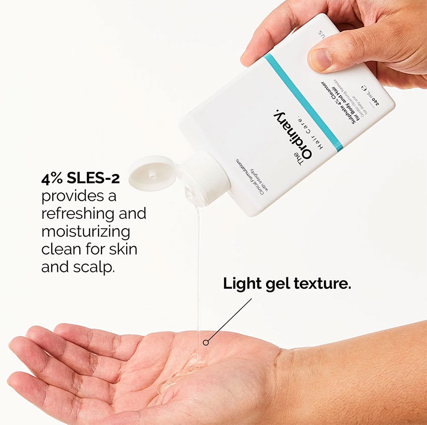 شامپوی مو و بدن سولفات روزانه اوردینری Ordinary Sulfate Cleanser برنده جایزه کازموپولیتن و دارای فرمول شوینده ملایم برای پاک کردن چربی اضافی و آلودگی از سطح مو، پوست سر و بدن بدون ایجاد خشکی و بدون تاثیرگذاری بر روی موهای رنگ شده می باشد. شوینده مو و بدن اوردینری حاوی کنستانتره 4 درصد فرم ملایم تر سولفات با نام SLES-2 است. این ترکیب ضمن حفظ قدرت پاک کنندگی برای پاکسازی آلودگی و بقایای مواد حالت دهنده مو، بر روی مو و پوست ملایم است و مواد مغذی ساختار مو را حفظ می کند و نتیجه احساس تمیزی و شادابی در طول روز خواهد بود.