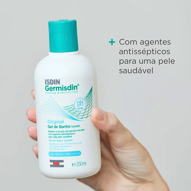 ژل دوش آنتی باکتریال ایزدین اورجینال Isdin Germisdin Original دارای فرمول ضد میکروب برای پاکسازی انواع باکتری ها و میکروب از سطح پوست به همراه ترکیب ویژه برای محافظت و حمایت از سد محافظت طبیعی پوست می باشد. ژل دوش ایزدین همچنین دارای pH متعادل بوده و بدون مواد شوینده صابونی کاملا بر روی پوست ملایم است. بافت ژلی شفاف آن برای پوست های نرمال و حساس مناسب می باشد و پوستی تمیز و محافظت شده را به ارمغان می آورد.