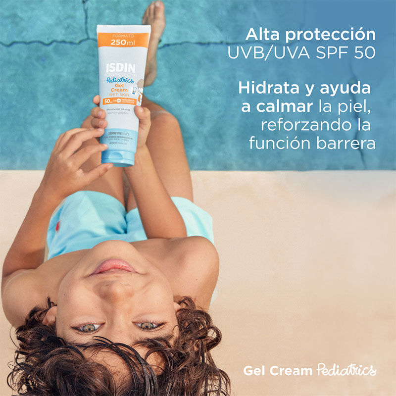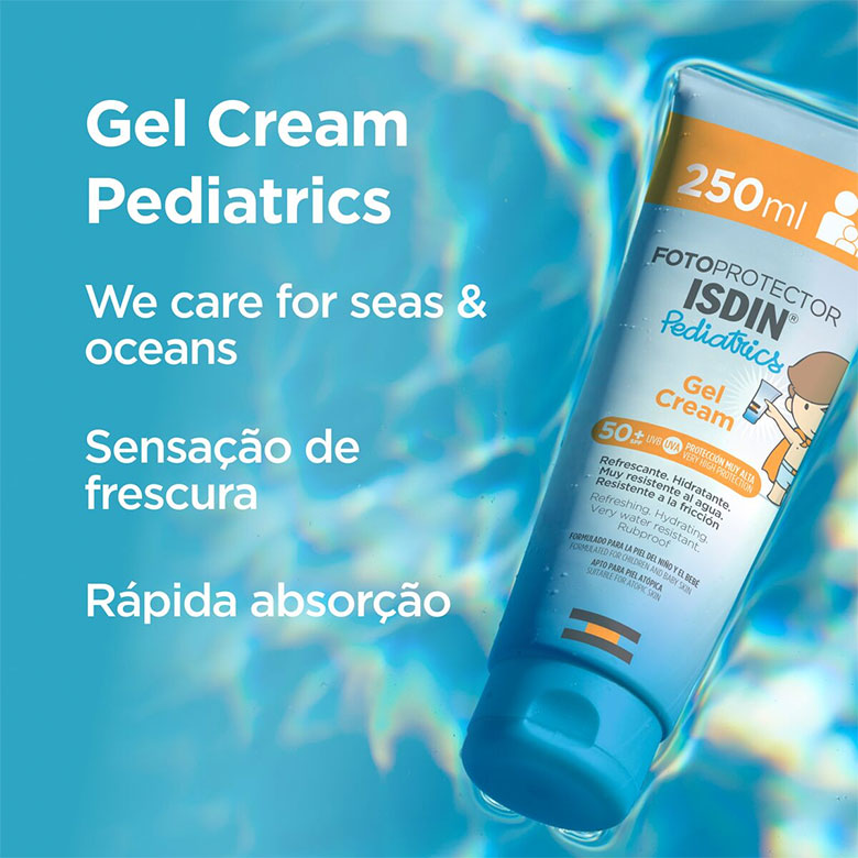 ژل کرم ضدآفتاب صورت و بدن کودک ایزدین Isdin Pediatrics Gel Cream SPF50 دارای فرمول ویژه برای مراقبت از پوست حساس کودک و نوزاد بالای 6 ماه به همراه عملکرد دوگانه آبرسانی مانند کرم و طراوت بخشی مانند ژل و محافظت قدرتمند به وسیله فیلترهای SPF50 می باشد. ژل کرم ضدآفتاب ایزدین برای همه اعضای خانواده از جمله کودکان و انواع پوست از جمله پوست های آتوپیک مناسب است، این ترکیب مقاوم در برابر آب و اصطکاک است و به سرعت جذب پوست شده و با ایجاد سپر حفاظت نامرئی، از پوست در برابر پرتوهای UVA و UVB محافظت می کند. ضدآفتاب ایزدین حاوی ویتامین ای با خواص آنتی اکسیدانی و پنتنول برای ترمیم پوست است و نمای ابریشمی و مات بدون براقیت را بر روی پوست ایجاد می کند.