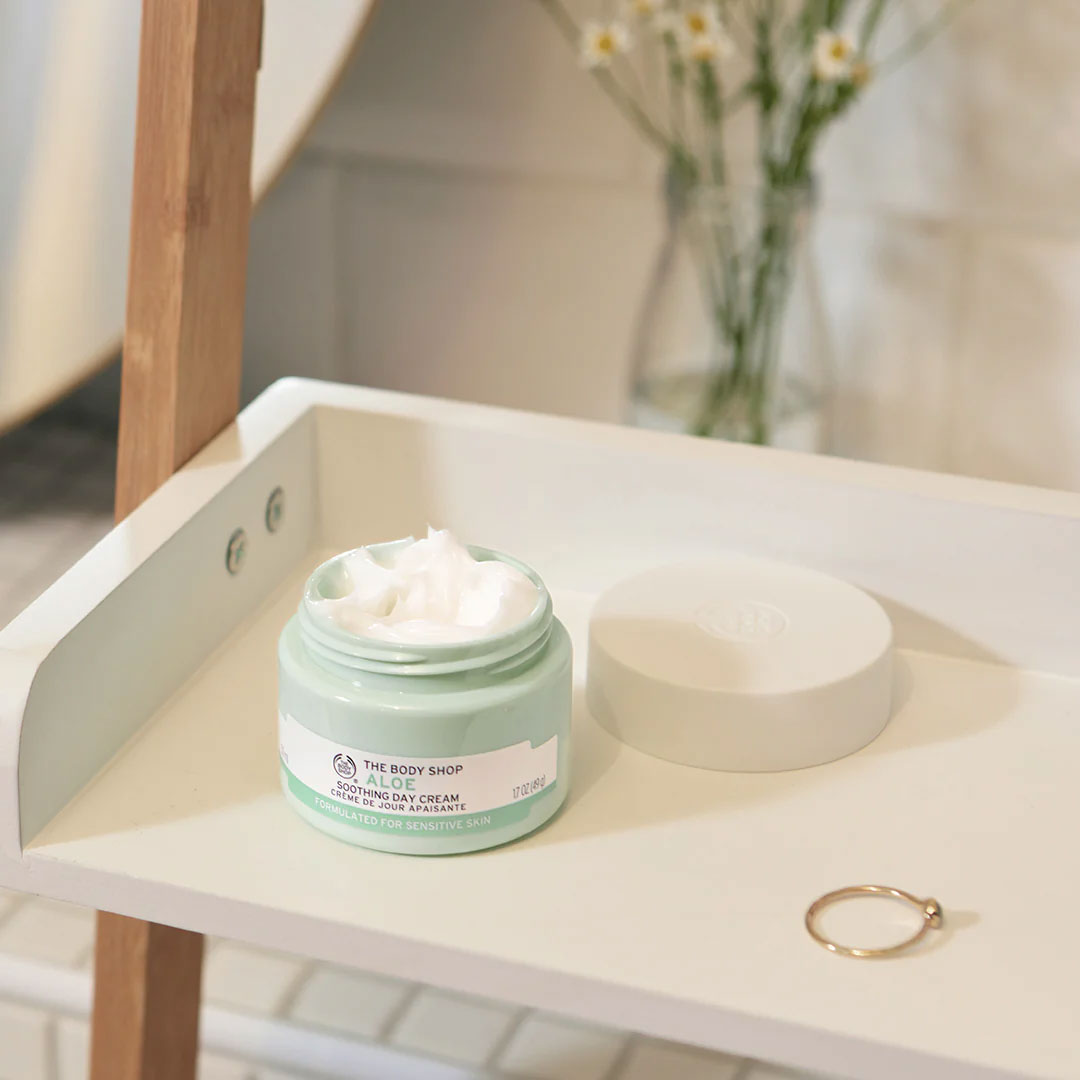 کرم تسکین دهنده روز آلوئه ورای بادی شاپ Body Shop Aloe Day حاوی بیش از 98 درصد عصاره های طبیعی برای آبرسانی 48 ساعته، طراوت بخشی، تسکین و محافظت روزانه پوست می باشد. کرم تسکین دهنده بادی شاپ حاوی عصاره آلوئه ورای ارگانیک دستچین شده و بدست آمده از برنامه تجارت عادلانه از مکزیک برای تسکین، آرامش بخشی و رفع التهاب پوست های حساس است. این ترکیب همچنین حاوی عصاره جوی دو سر برای تغذیه و آرامش پوست و کنجد برای تغذیه و حفظ لطافت پوست می باشد.