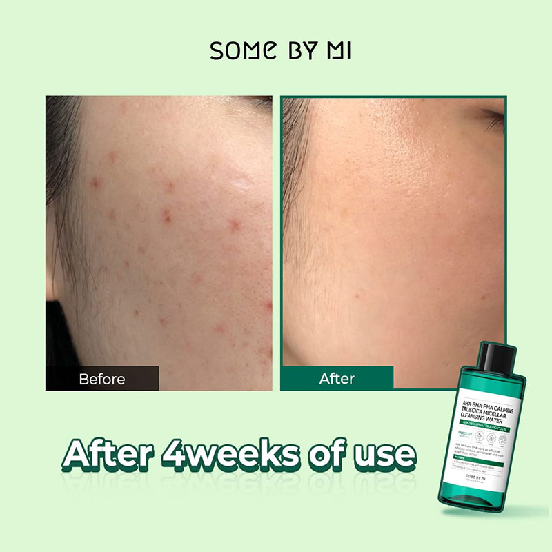میسلار واتر تسکین دهنده سام بای می تروسیکا Some By Mi Truecica دارای فرمول پاک کننده موثر آلودگی ها، آرایش، چربی سبوم و منافذ پوست به همراه تسکین بخشی و جلوگیری از ایجاد التهاب و حساسیت می باشد. میسلار واتر سام بای می حاوی کمپلکس تروسیکا متشکل از عصاره درخت چای با خواص آنتی باکتریال و ضدجوش، عصاره گیاه سنتلا آسیاتیکا با خواص ترمیم کنندگی قوی و عصاره گیاه درمنه برای تسکین بخشی پوست های جوش دار و حساس است.