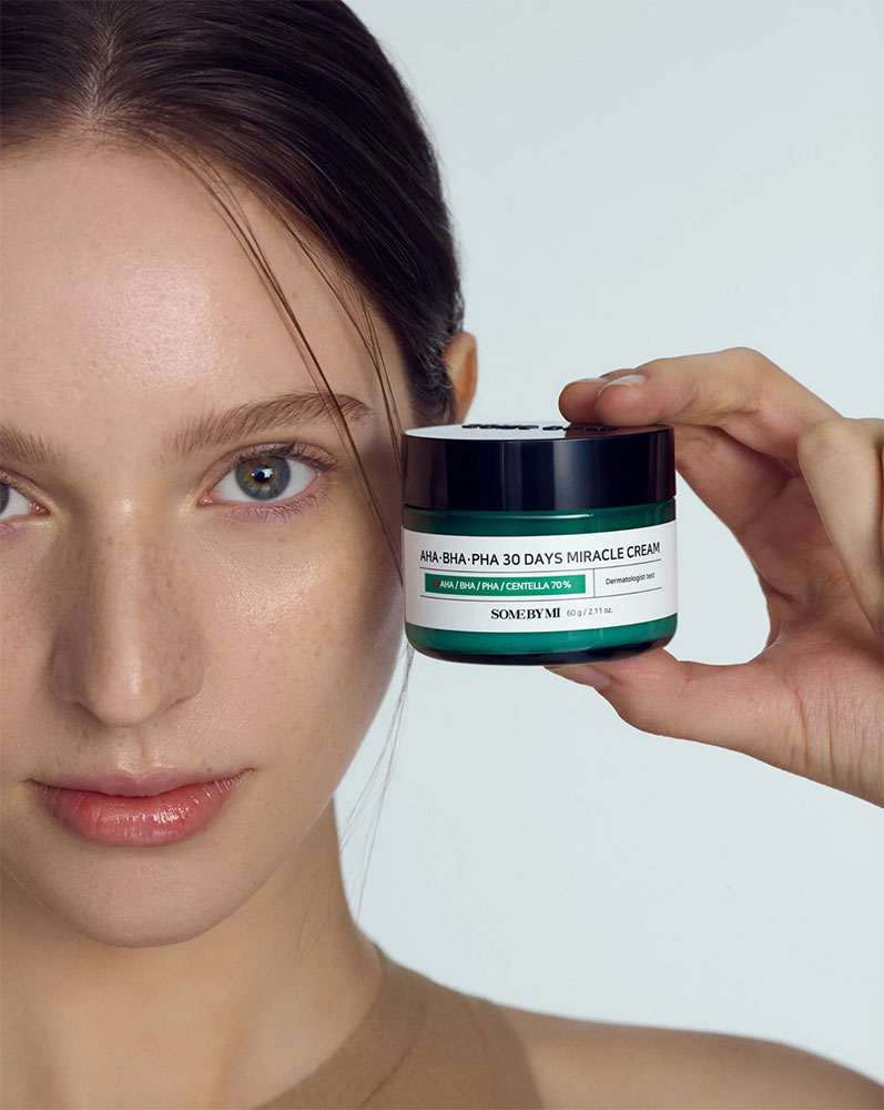 کرم تصفیه کننده و محافظت کننده سام بای می میراکل Some By Mi Miracle دارای فرمول ویژه با عملکرد دوگانه پاکسازی سموم و سلول های مرده پوست به همراه تقویت و افزایش استحکام سد محافظت طبیعی پوست و ایجاد نمای پوست سالم و روشن تر در طی 30 روز می باشد. کرم میراکل سام بای می حاوی کمپلکس 70 درصد عصاره گیاه سنتلا آسیاتیکا با خواص ترمیم کنندگی و تقویت سد محافظت طبیعی پوست و عصاره درخت چای برای کنترل چربی و رفع جوش است. این ترکیب همچنین عصاره آویشن برای تصفیه منافذ، لاوندر برای تسکین پوست و عصاره رزماری و مرزنگوش برای سم زدایی و متعادل سازی بافت پوست می باشد. اسیدهای AHA، BHA و PHA با ویژگی های زیر برای پاکسازی ملایم بدون تحریک پوست و ایجاد پوستی هموارتر و شفاف تر به این فرمول اضافه شده اند: