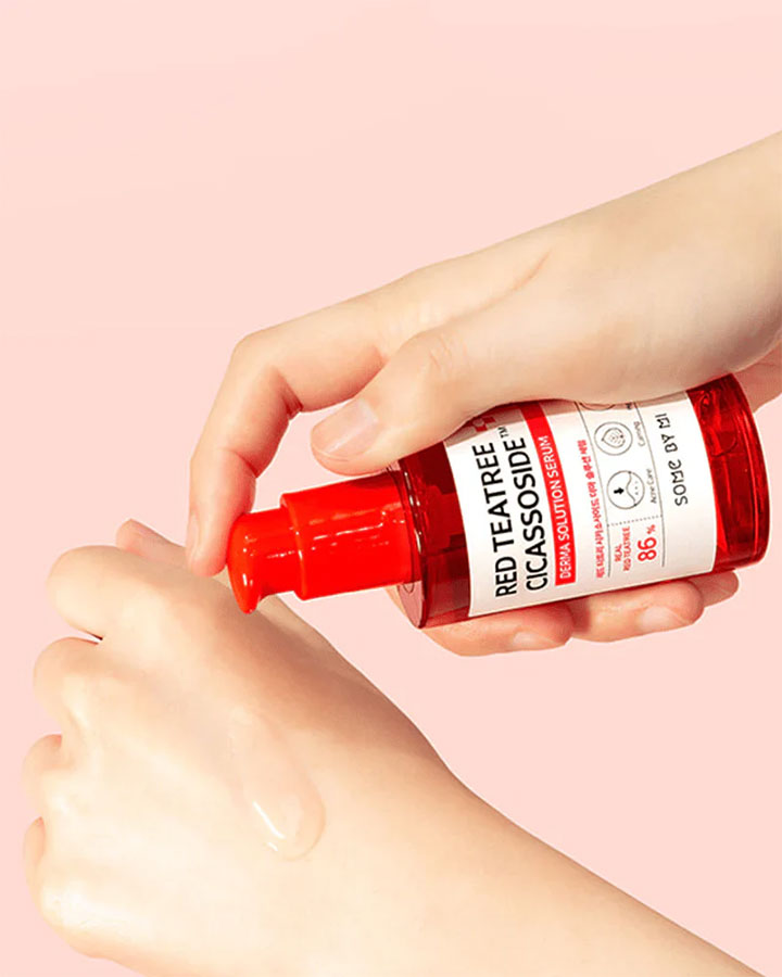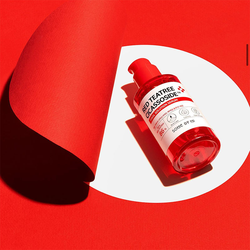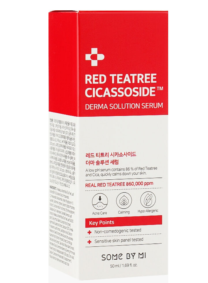 سرم ضد قرمزی و تسکین دهنده سام بای می Some By Mi Red Teatree دارای فرمول ویژه برای پوست های حساس و مستعد آکنه با عملکرد تسکین بخشی، لایه برداری ملایم سلول های مرده و رفع قرمزی پوست در طی دو هفته می باشد. سرم سام بای می حاوی 86 درصد عصاره درخت چای قرمز با خواص آنتی باکتریال برای رفع جوش، تسکین بخشی و ملایمت بیشتر از درخت چای سبز بر روی پوست است. این ترکیب همچنین حاوی کمپلکس ثبت اختراع شده سیکاسوساید متشکل از گیاهان ترمیم کننده برای تسکین قوی پوست و همچنین اسیدهای PHA برای پاکسازی ملایم سلول های مرده پوست های حساس است.