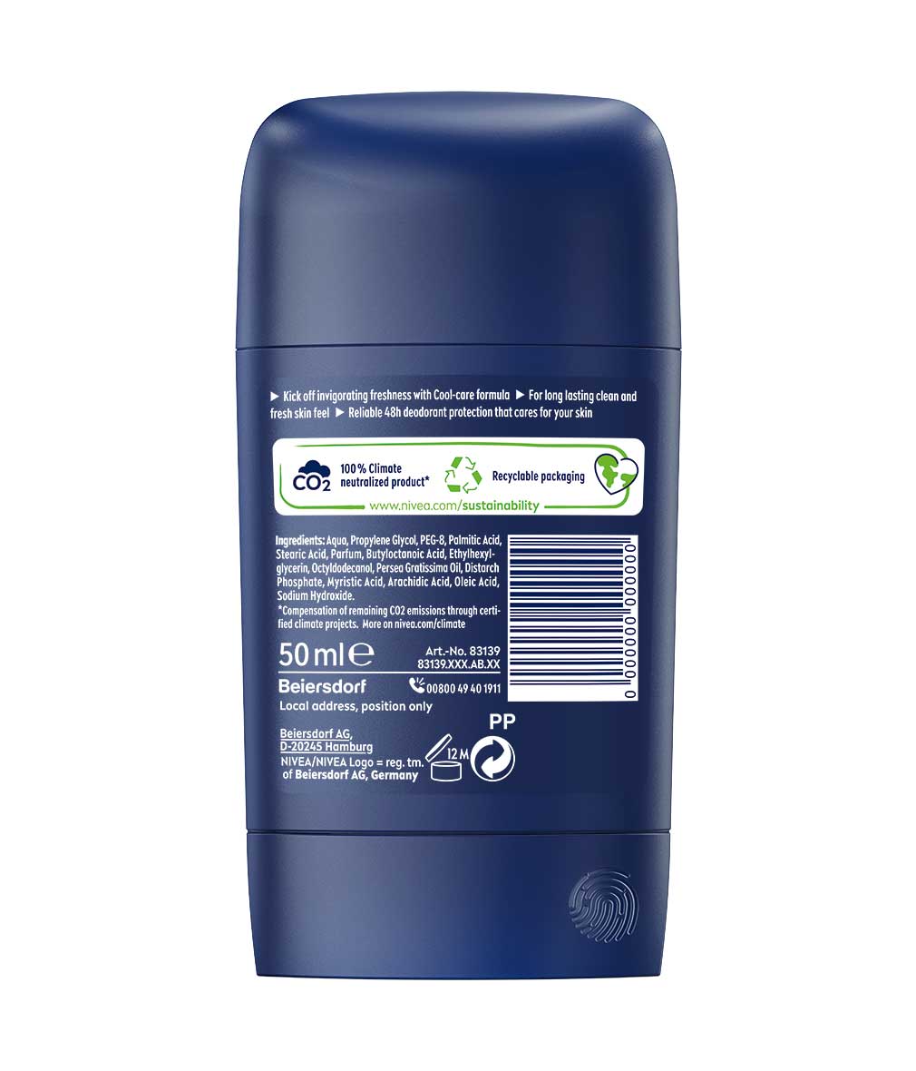 Nivea Men Cool Kick 48H 3in1 Skin Feel Gentle Fresh Clean Deodorant Stick
