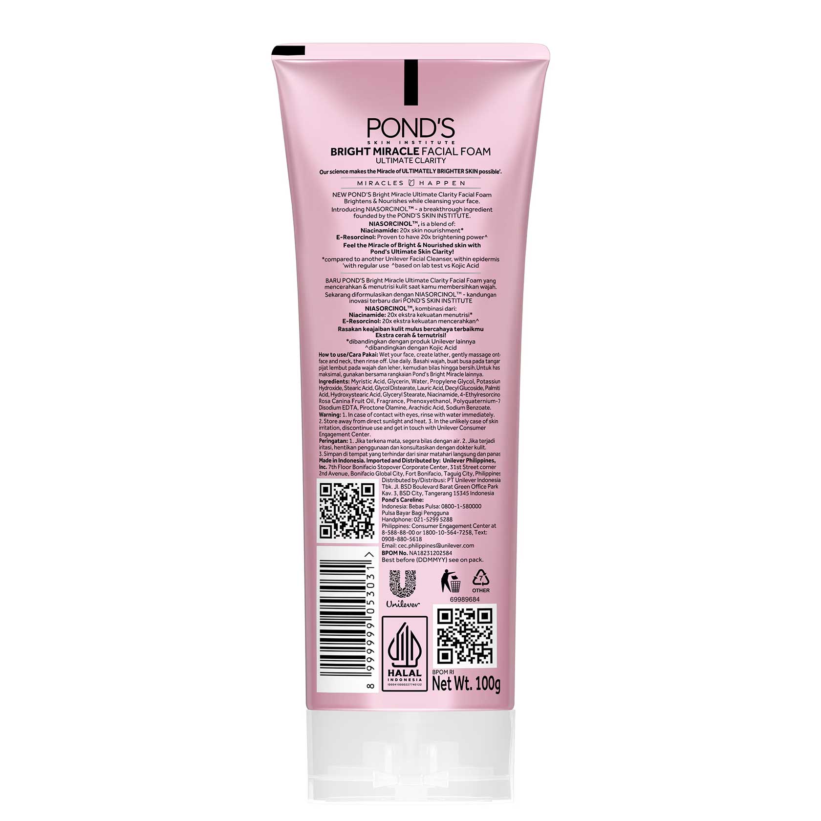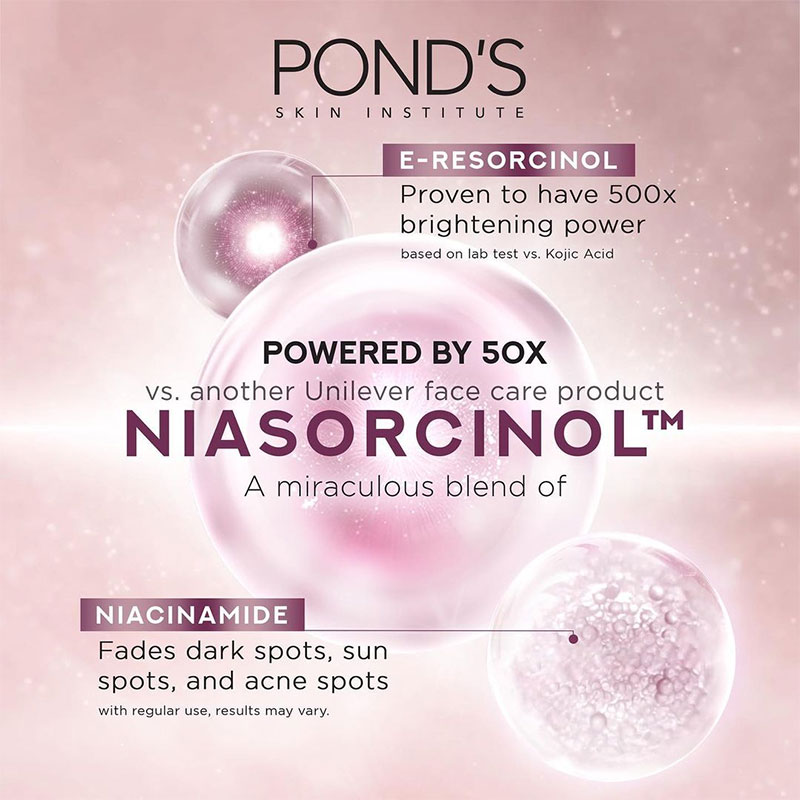فوم شوینده و روشن کننده صورت پوندز نیاسورسینول Ponds Niasorcinol دارای فناوری جدید الهام گرفته از مفهوم علمی اتوفاژی Autophagy برنده جایزه نوبل پزشکی در سال 2016 برای افزایش شفافیت و درخشندگی پوست می باشد. اتوفاژی پوست توانایی خود ترمیم گری و زیبا ماندن در برابر عوامل مهاجم محیطی است، هر چه پوست لک و یا علائم پیری بیشتری داشته باشد توانایی اتوفاژی آن کاهش می یابد.