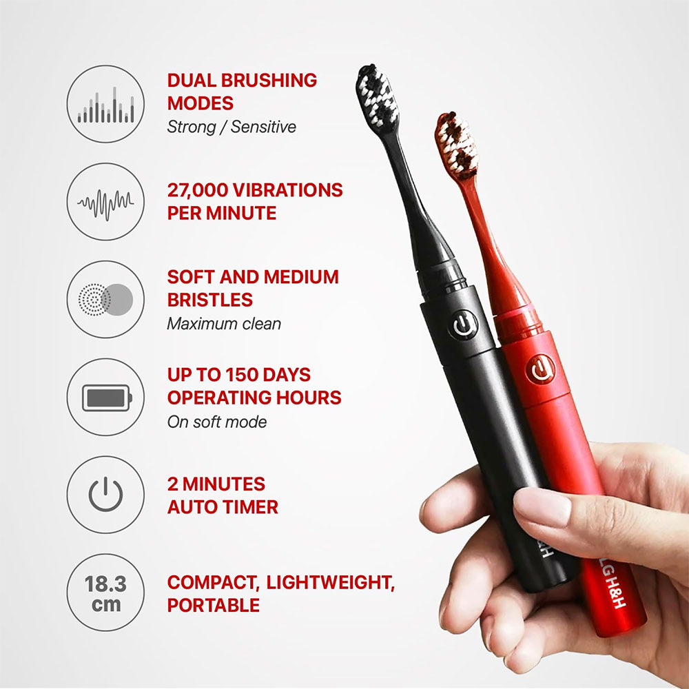 مسواک برقی ریچ دوال سونیک Reach Dual Sonic دارای فناوری پیشرفته سونیک برای پاکسازی 99 درصد پلاک های دندان و پاک کنندگی دندان و خط لثه برای لبخندی زیبا می باشد. مسواک برقی ریچ دارای برس با ترکیب دوگانه دو قسمت نرم و معمولی برای مسواک زدن قوی و حساس به طور همزمان و ایجاد حداکثر تمیزی است. این مسواک دارای 27000 لرزش در دقیقه است و به کمک یک باتری نیم قلمی 1000 میلی آمپر 150 روز کاری دوام دارد. مسواک برقی ریچ دارای وزن سبک و ابعاد مناسب 18.3 سانتی متری است و برای حمل در کیف مسافرتی گزینه ای ایده آل است.