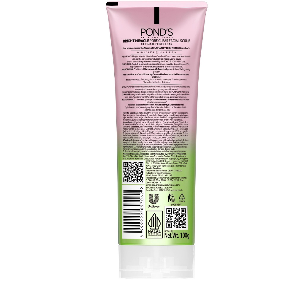 Ponds Bright Miracle Ultimate Pore Clear BHA Clay Niasorcinol Facial Scrub