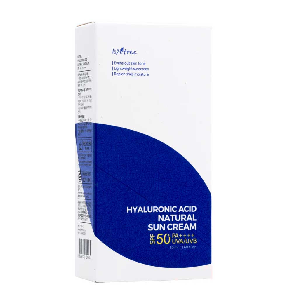 کرم ضدآفتاب هیالورونیک اسید ایزنتری Isntree Hyaluronic Sun Cream محافظت کننده قوی با فیلتر SPF50 در برابر پرتوهای UVB و UVA به همراه مواد موثر آبرسان و روشن کننده پوست است. کرم ضدآفتاب ایزنتری حاوی هیالورونیک اسید برای آبرسانی قوی است که با دیگر ترکیبات کلیدی از جمله آدنوزین برای افزایش ارتباط میان سلولی و سفتی پوست و نیاسین آمید برای تسکین و روشن کنندگی پوست همراه شده است. این فرمول همچنین حاوی پنتنول برای بازسازی و محافظت سلولی و ویتامین ای با خواص آنتی اکسیدانی و ضدپیری است.